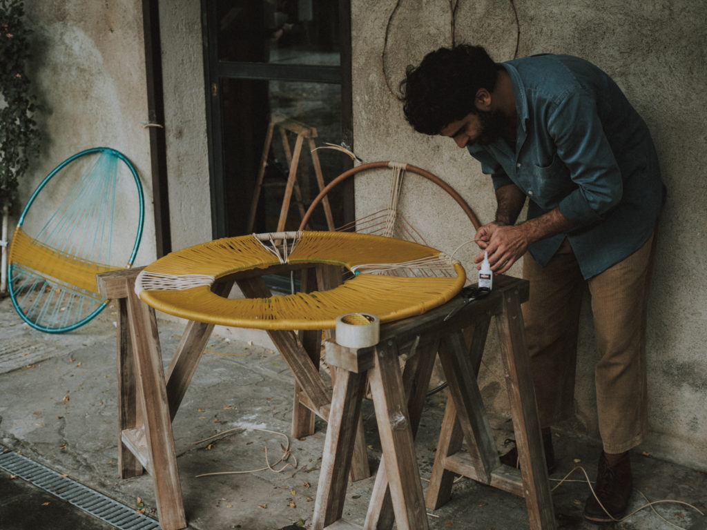 Looking at the metal rings and the skeins of wire, certainly frightened all of us a little: what would be the end result? But if working alone seemed impossible, two more hands were enough to support the circle and proceed with the technique of weaving, giving shape to the fantasies that were previously buried in a tangle of threads. And what an unexpected result! Compositions of colours and shapes, weaving of all kinds, modular seating, XXL toys for curious children … Watching them there, at the Vigne Museum, one can not help but think of the hands that have woven them, the relationships and friendships started in those days.
