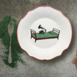 The artist chooses these weapons to challenge the small daily disagreements, the sense of responsibility and the daily duties that make us human.