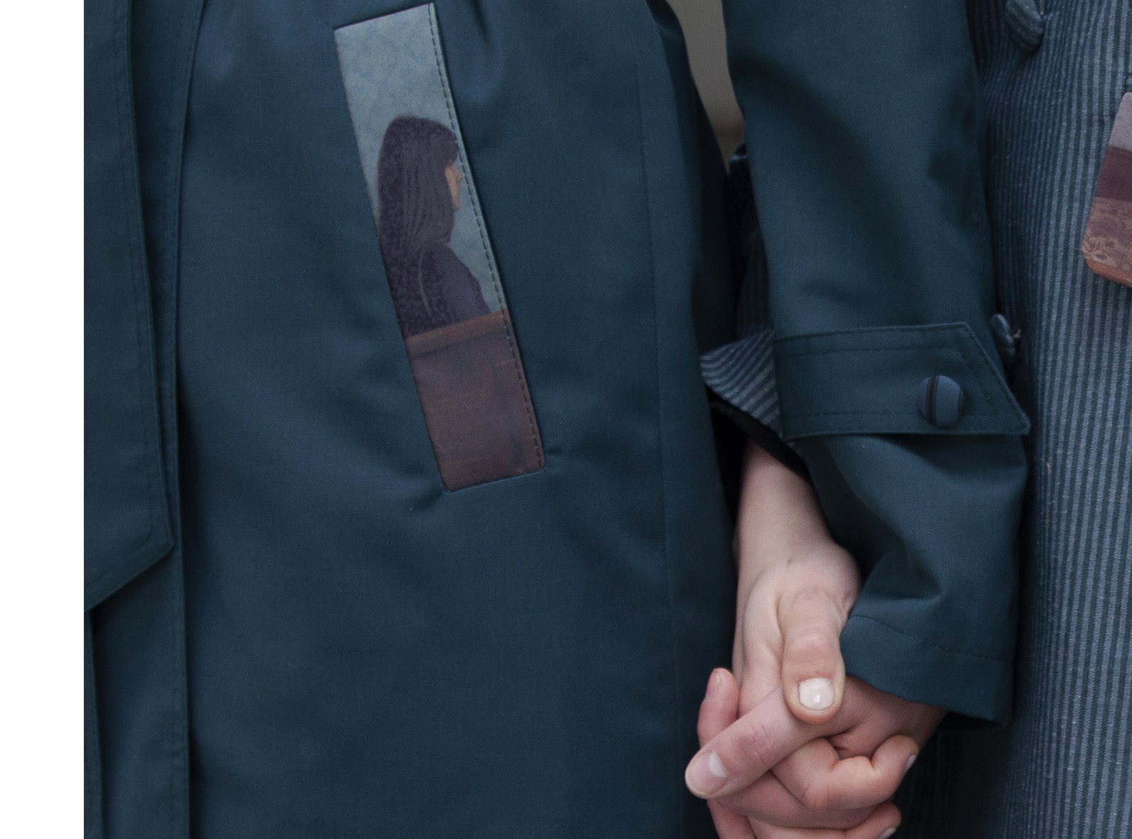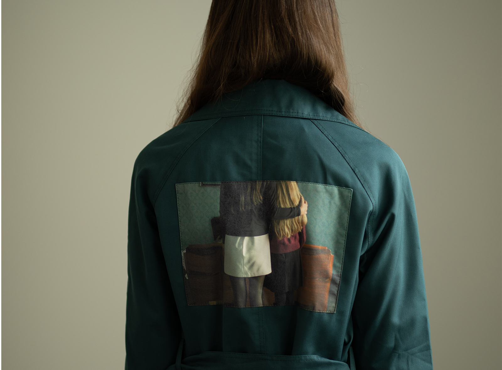 relationships, in this case the relationship between sisters. The love that binds us to family members is very often permeated by disagreements, misunderstandings and rivalries. Nevertheless, the artist also highlights the importance of affection through photographs, which portray closeness and forgiveness, becoming an integral part of the clothing.