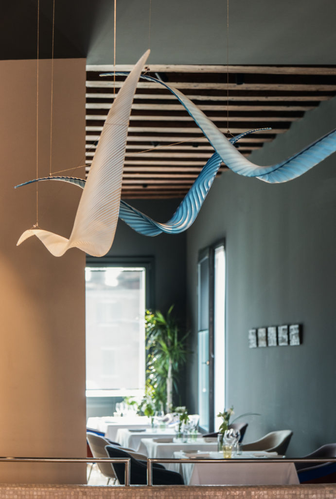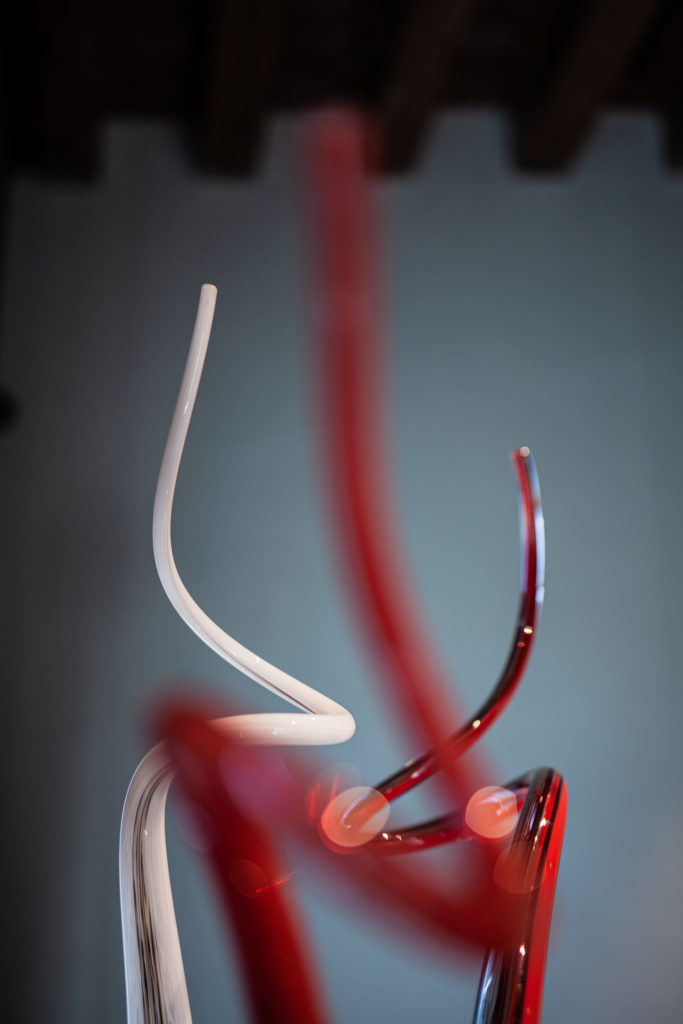 Purho is an amazing small brand dealing with Murano blown glass. To enhance its potential, this year the Company opened up to a limited edition series of lighting pieces and furniture all by Filippo Feroldi merging glass and fabrics developed with the strategic collaboration of Colleoni Arte staged at 5Vie District during the MDW19.