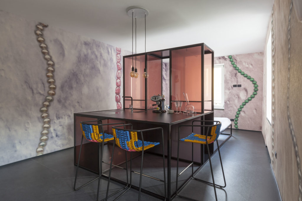 CARTE is the name of the collection of artistic wallpaper projects that characterise all the Atemporary Art Apartments. Three special concepts by Patrick Tuttofuoco, Donatella Spaziani and Riccardo Previdi qualify each of the three mini lofts in Trento, but CARTE is due to continue growing to become a widespread exhibition of artists’s works on wallpaper.