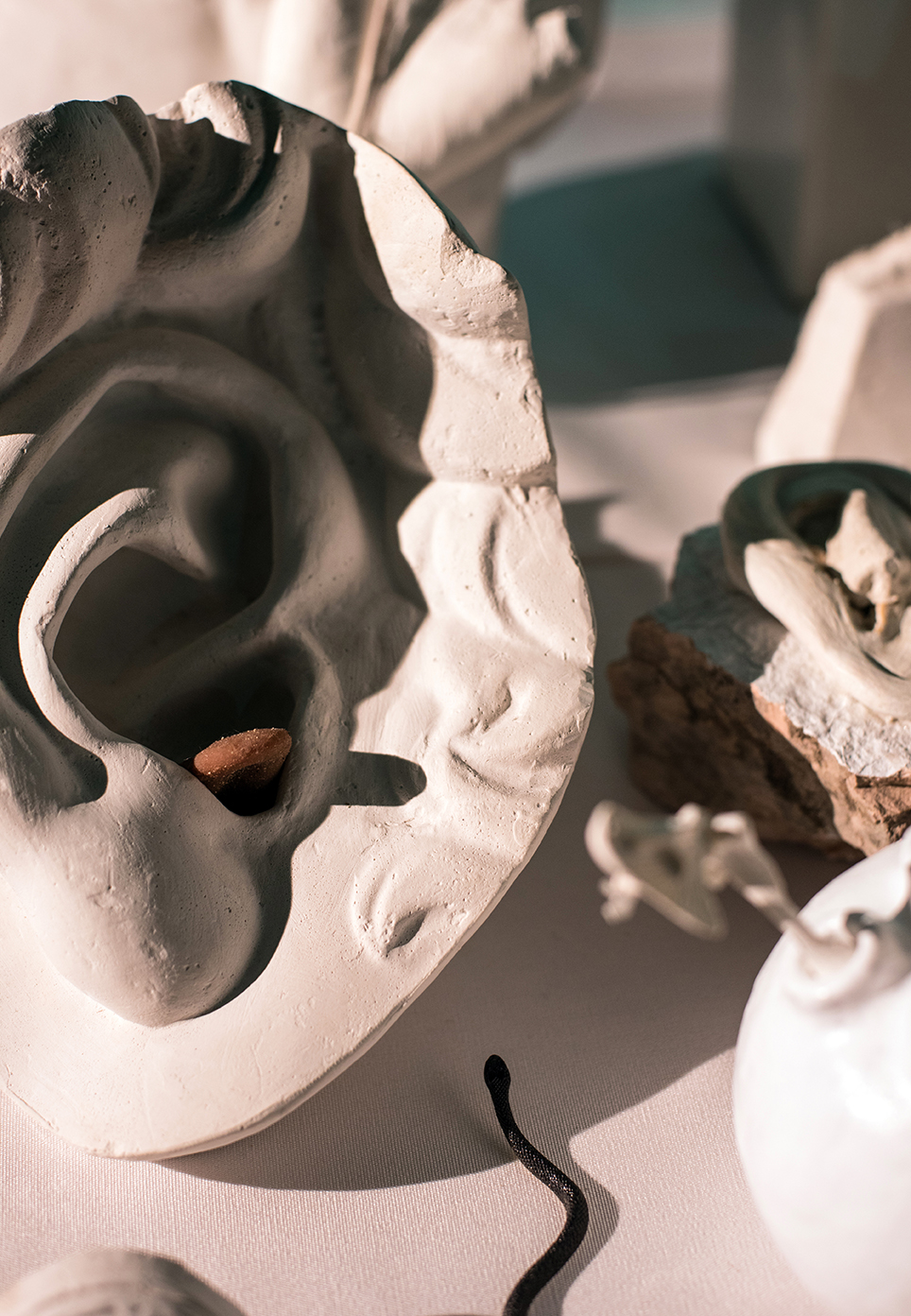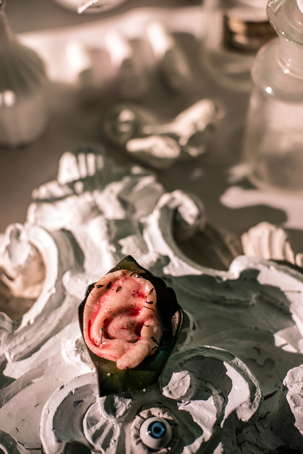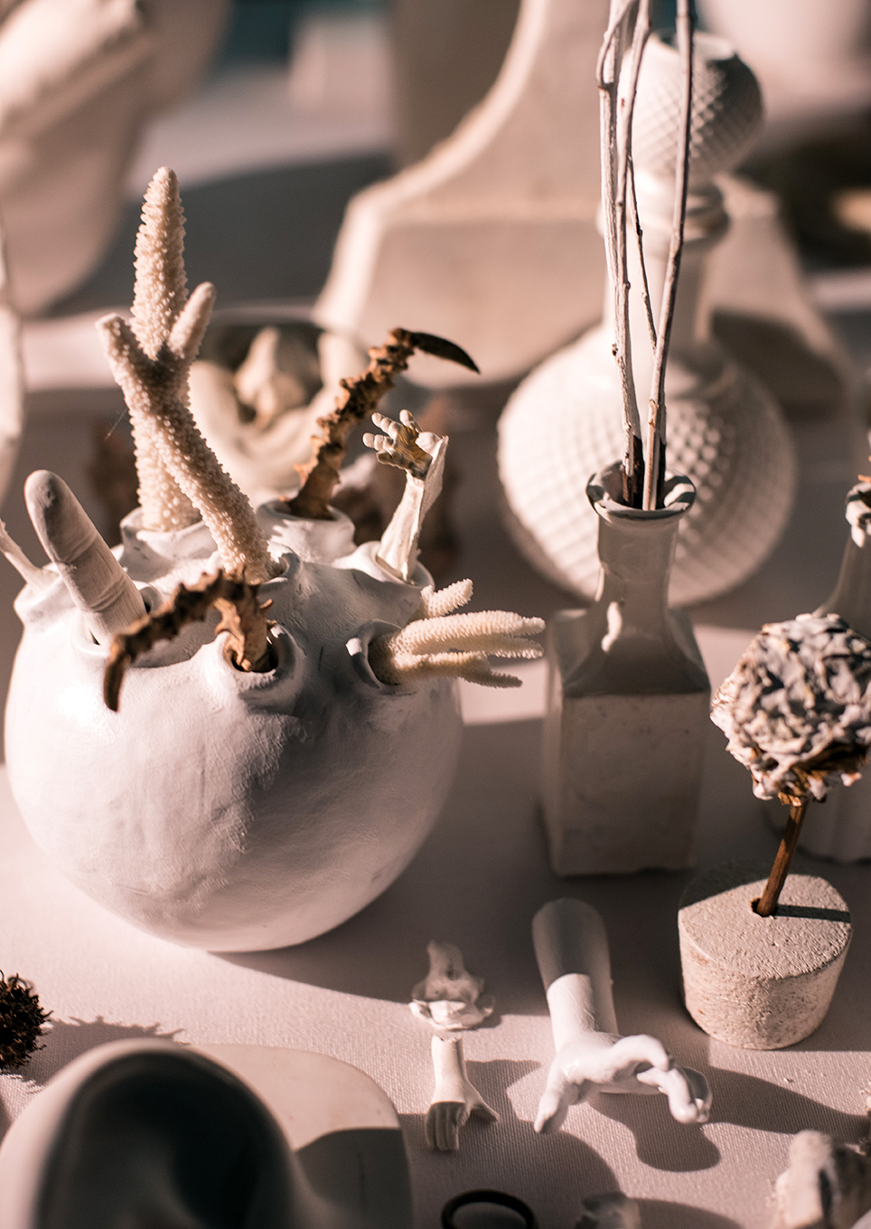 For some time now I have been studying plant anthropology, i.e. the combustion between organic and plant matter and human anatomical structure, finding a point of fusion between subject and object, as the nature that surrounds man makes his BODY ALIVE, constituting an order.