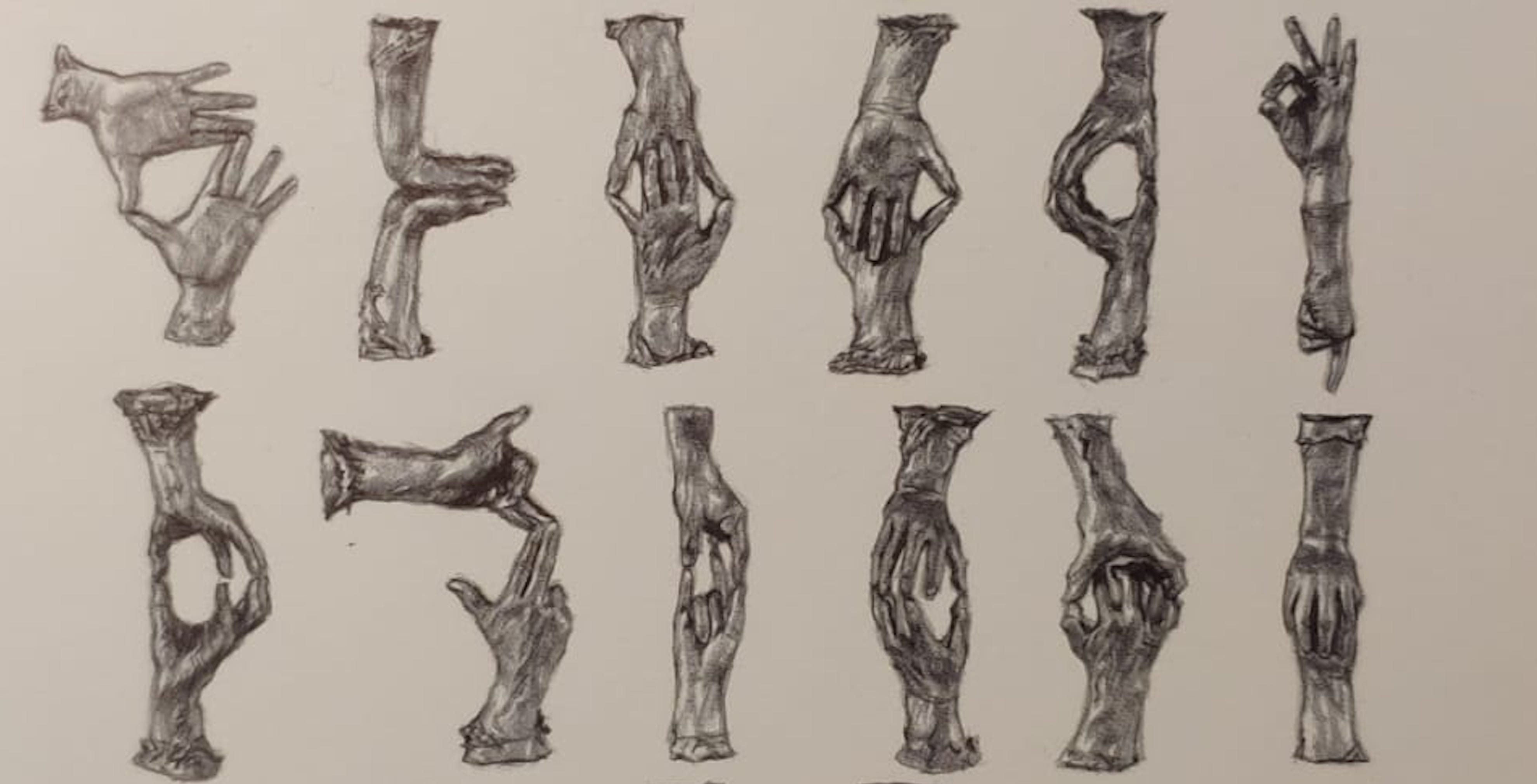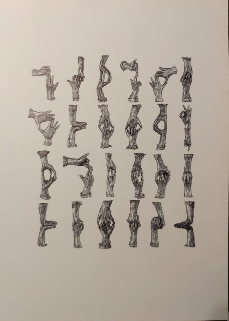 In questo periodo di Coronavirus sono ossessionato dal contatto e dalle mani delle persone. Ho ridisegnato un lavoro storico di Bruce Nauman proprio sul concetto di tatto e relazioni. Nel fare e rifare, in una sorta di post produzione, trovo il modo di usare un concetto per ritualizzare un sensazione, per darne un significato nuovo. In questo caso ho riattualizzato il senso del “contatto” e mi sono riappropriato di quel concetto. — Giuseppe Stampone, periodo di quarantena da mercoledì 11 marzo 2020