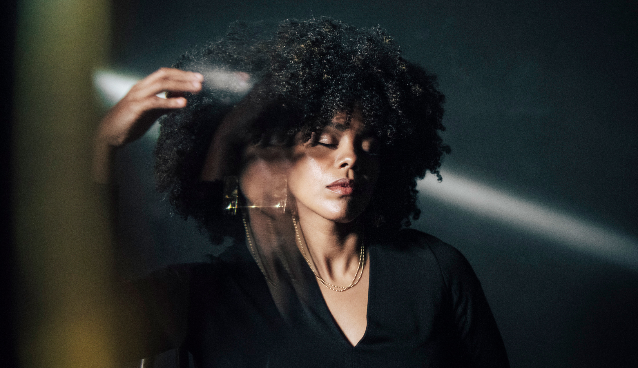 … durante i suoi semplici rituali quotidiani, trascorsi con amiche, sorelle e altre donne, con particolare attenzione ai capelli e al set culturale, valori religiosi, sociali e sessuali che la gestione dei capelli per una donna in una data società può comportare: acconciatura, equilibrio, colore…