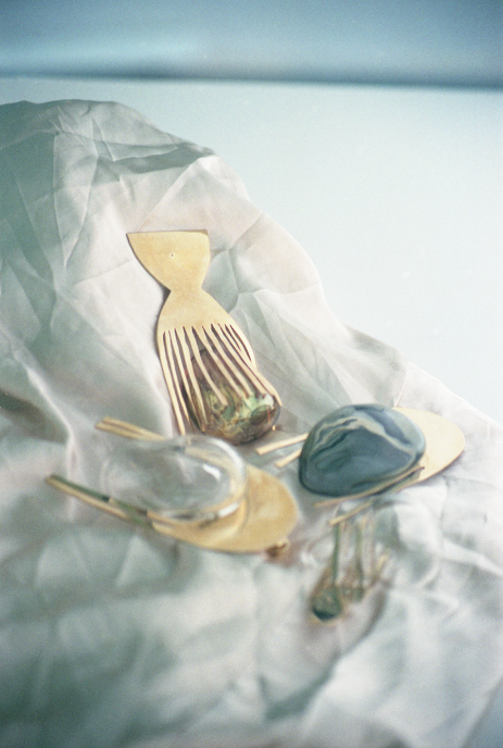 GV – I’m thinking of SURI x A.C., my collaboration with Alberto Cornolò, a brilliant emerging fashion designer at IUAV in Venice, and I can clearly see the trail this connection has left in my work. On that occasion I created two unique pieces, a brooch and an earring, for the final collection that Alberto presented during Milan Fashion Week 2020. From the experience with these jewels, LUCE was born, a capsule collection of earrings. Each piece is unique, hand-cut, finished with a warm and luminous golden texture. Cascades of freshwater pearls, small bright pink pearls or tiny shells cling to the metal. The result is a hymn to the light of Venice, to its sensuality and its contradictions. Each piece is unique and fits perfectly on anybody. Every partnership requires a discussion between me and the other person, from these chats insights emerge that you have to know how to listen to, because often their strength is revealed over time, appearing to us perhaps only thanks to a quick note on a piece of paper.