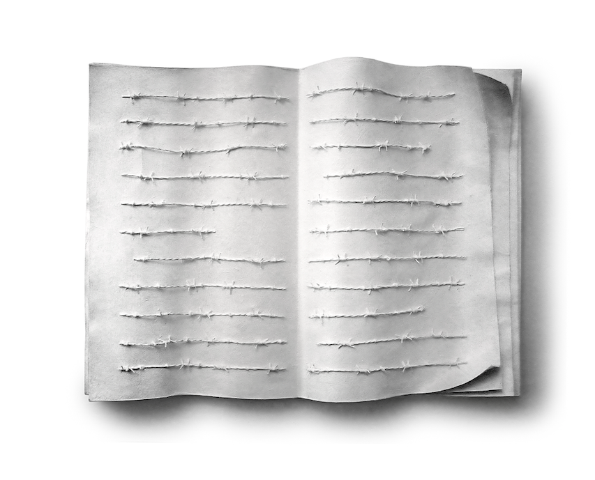 Perrone, PER NON DIMENTICARE -LIBRO VERO E FILO SPINATO- cm 115X95X20