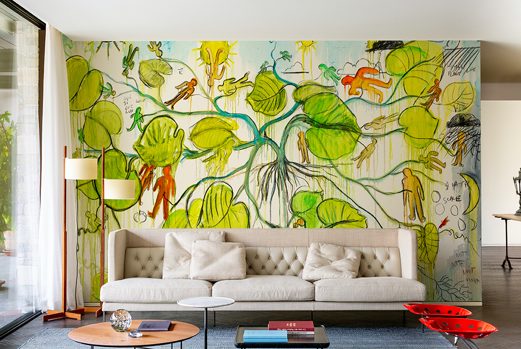 Con questa mission di allargamento dei confini dell’opera i sette artisti invitati, hanno ideato un vero e propio wallcovering, concepito come tale, per entrare a contatto con gli spazi più intimi e privati così come circondare spazi pubblici a favore di una funzione condivisa.