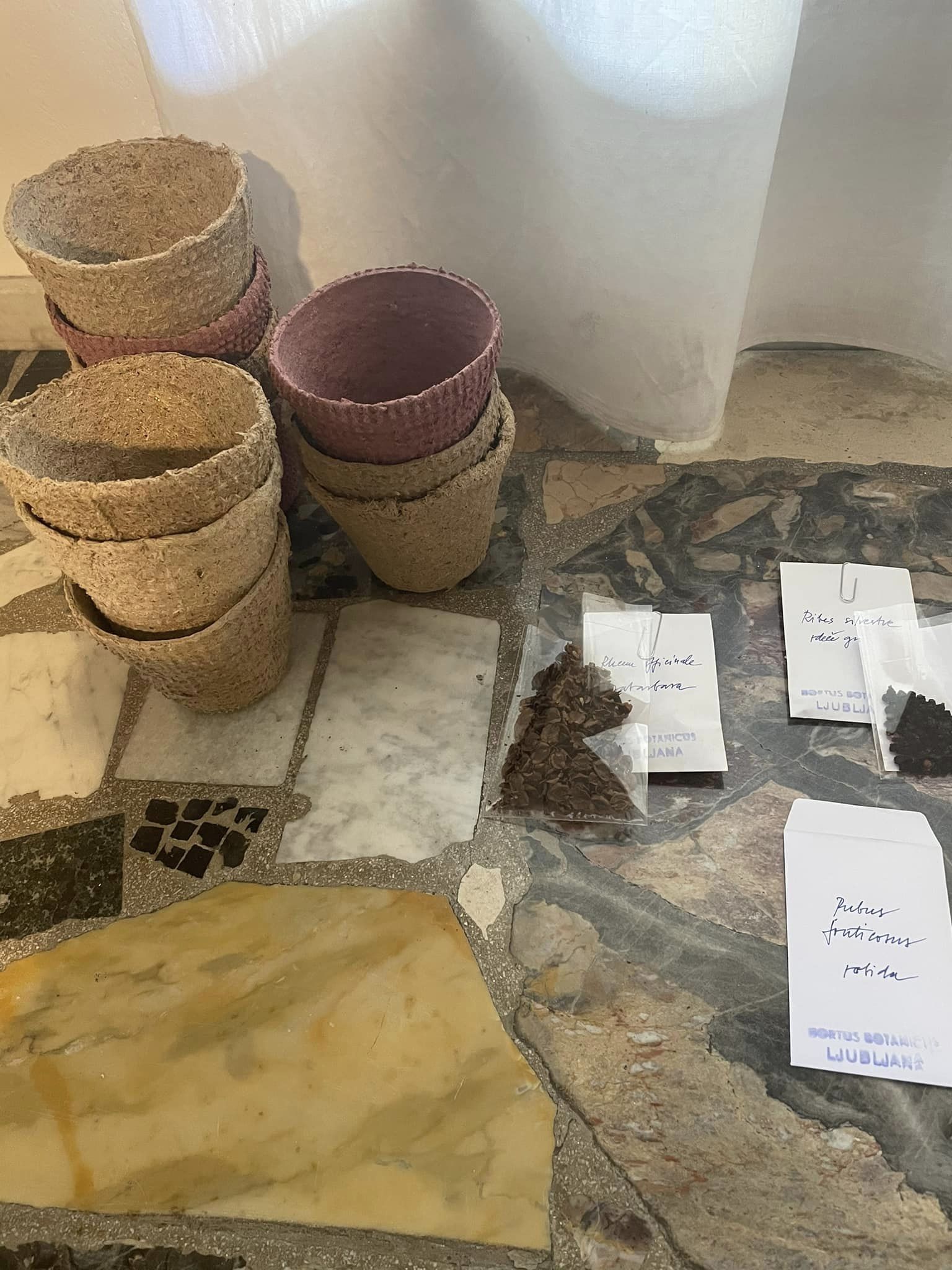 Olaf Nicolai, a Berlin yet international artist (maybe you saw him at the Venice Biennale in 2001, 2005 and 2015), and Luca Lo Pinto are friends and have worked together often: for example, for Olaf’s major exhibition in Vienna in 2018, “There Is No Place Before Arrival”. Plečnik and Ljubljana share a common passion, and Olaf Nicolai, who has a sweet tooth, managed to convince even the Michelin starred chef Ana Roš to create recipes with what was found in the architect’s garden. But the recipes are recited: this too is a small artist’s divertissement.