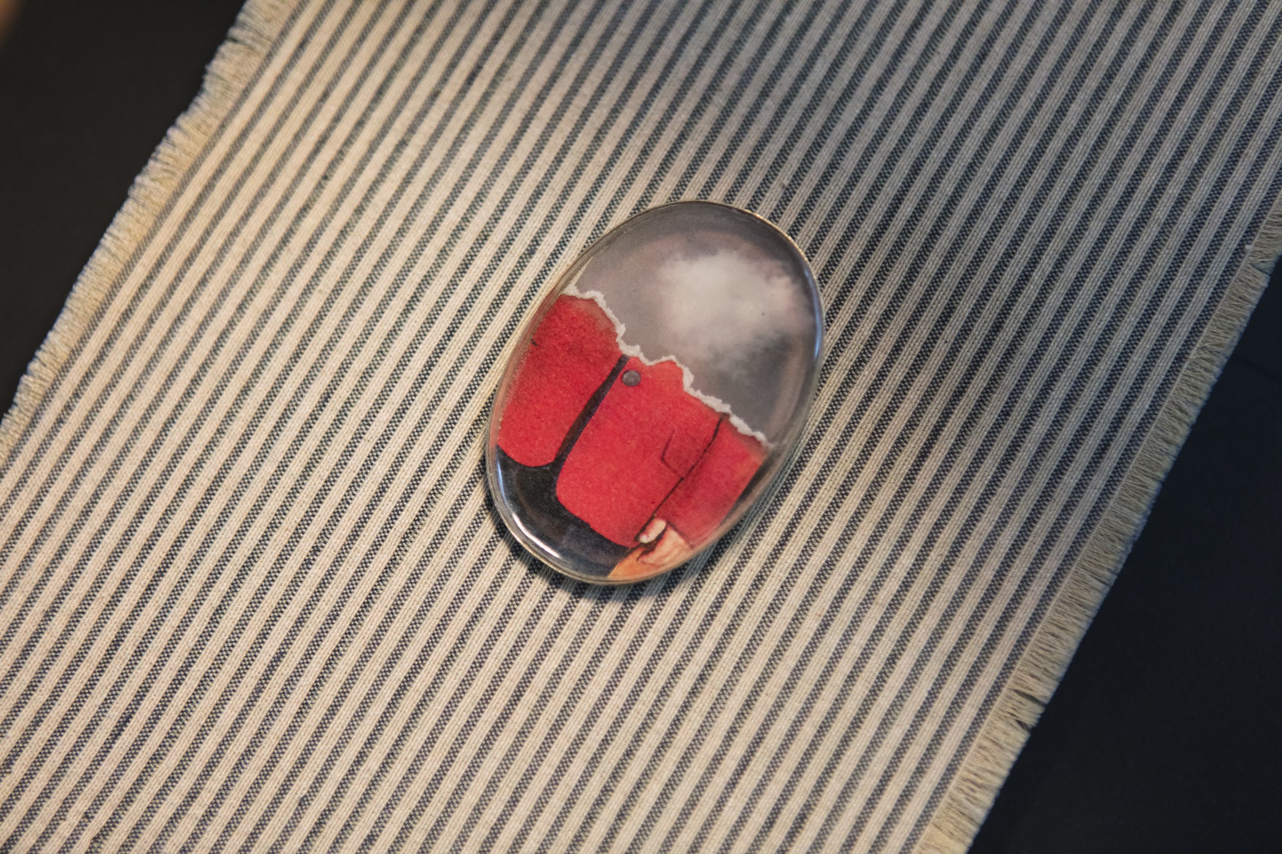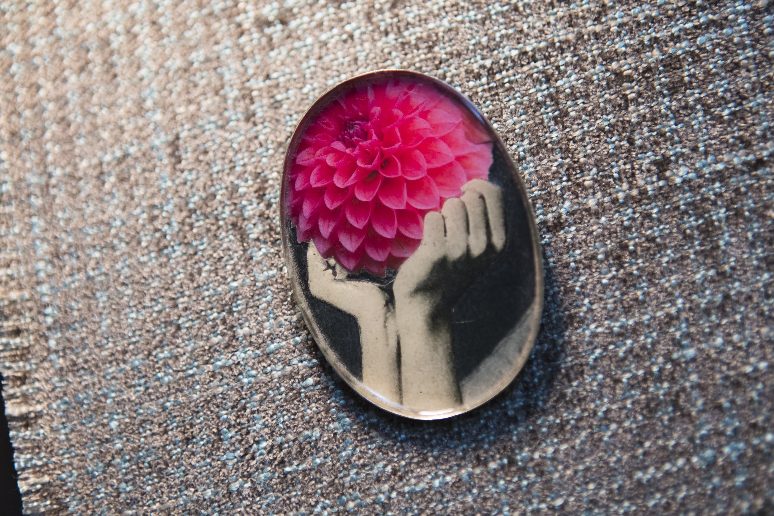 Vanda Gemino creates brooches using newspapers, vintage magazines, photos and postcards from the 40s–60s. Her practice of collage led her to work on a very small scale. Her brooches are windows on her poetic imagination where fragments of memories, pieces of old times and her romantic creativity create piece after piece an intriguing and sensitive puzzle.