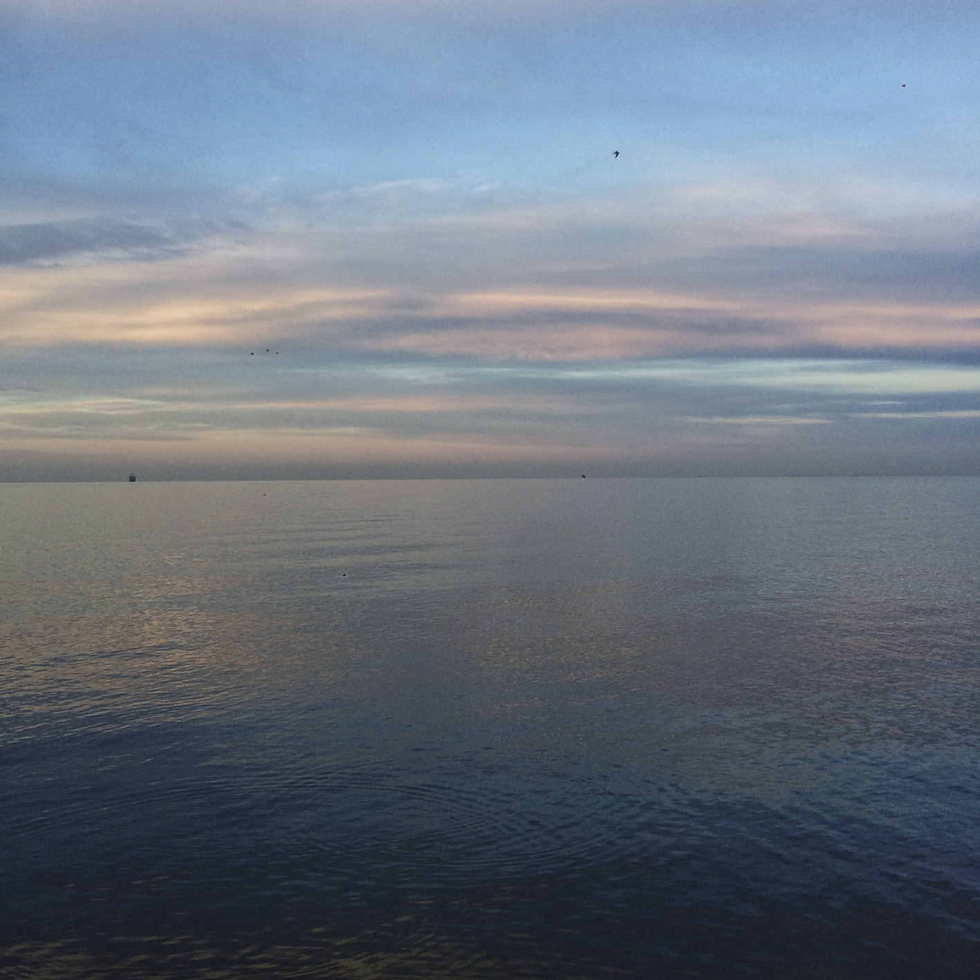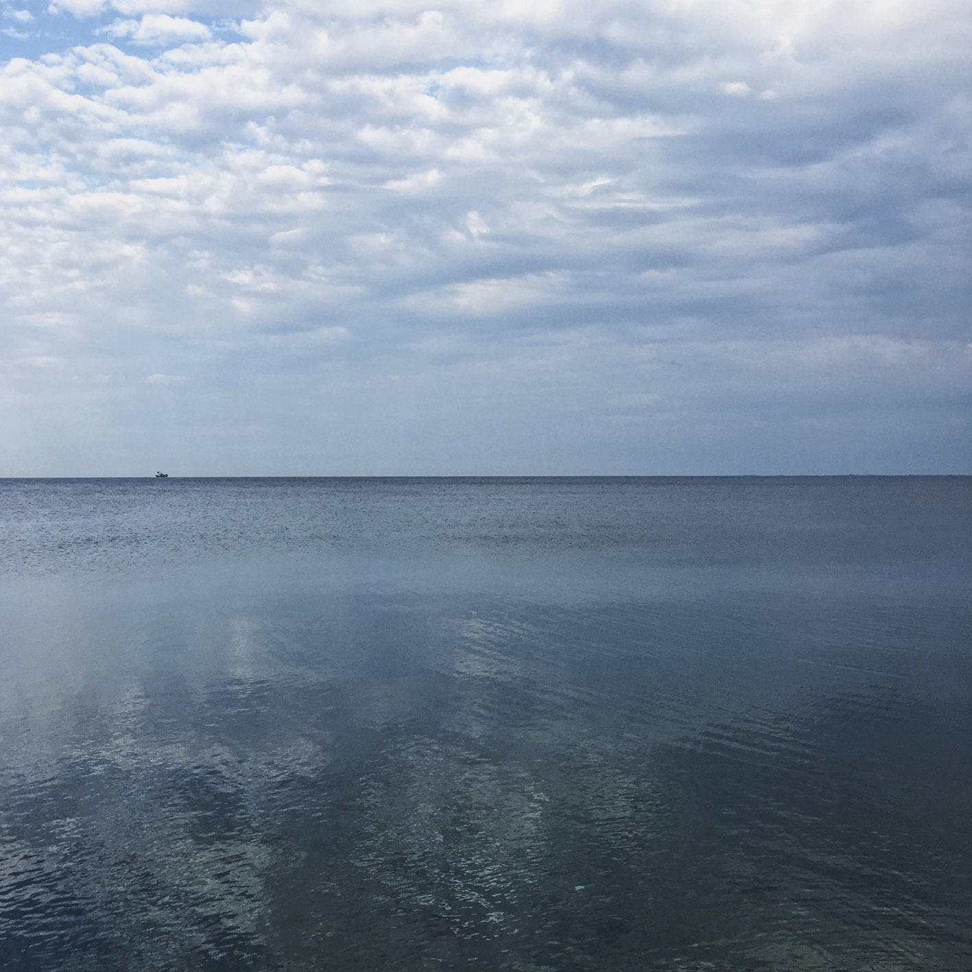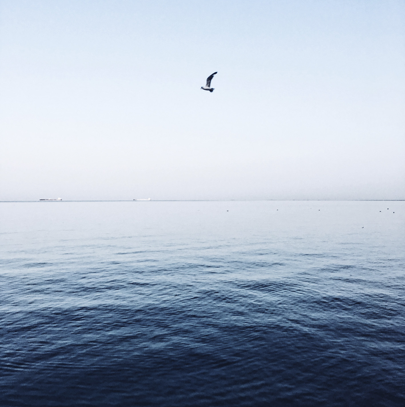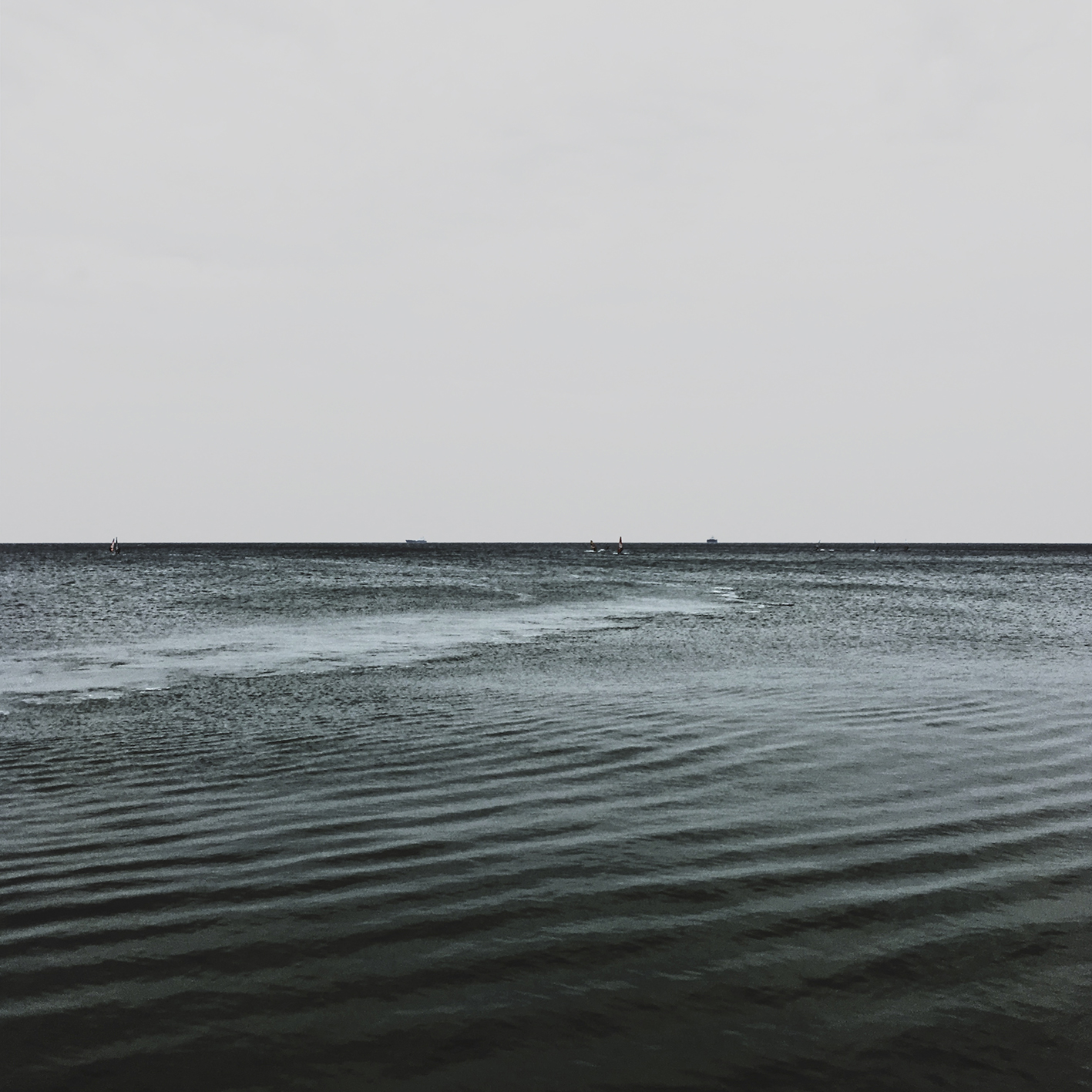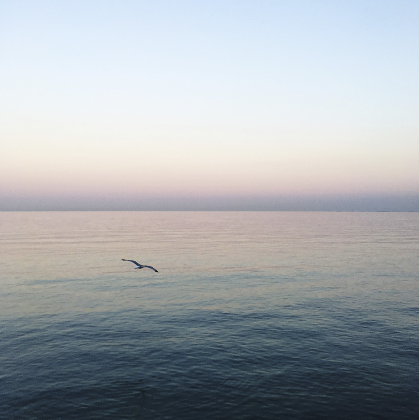 Semplici frame quadrati, divisi esattamente a metà, tra mare e cielo, ripresi sempre esattamente dallo stesso punto, sempre nella stessa direzione. Eppure non c’è mai stato uno scatto che sia risultato simile all’altro; l’impermanenza degli elementi riscrive senza sosta il fruire del tempo che non lascia mai tracce uguali a se stesse. In quelle piccole immagini ancora ritrovo memoria di preziosi attimi di presenza, guadagnati su quel sasso tra echi del passato e pensieri futuri. La luce del vento lascia sempre il suo segno sulla superficie del mare, mostrando la sua forma sul pelo dell’acqua, ridisegnando la corsa delle nuvole quando passano da quelle parti.