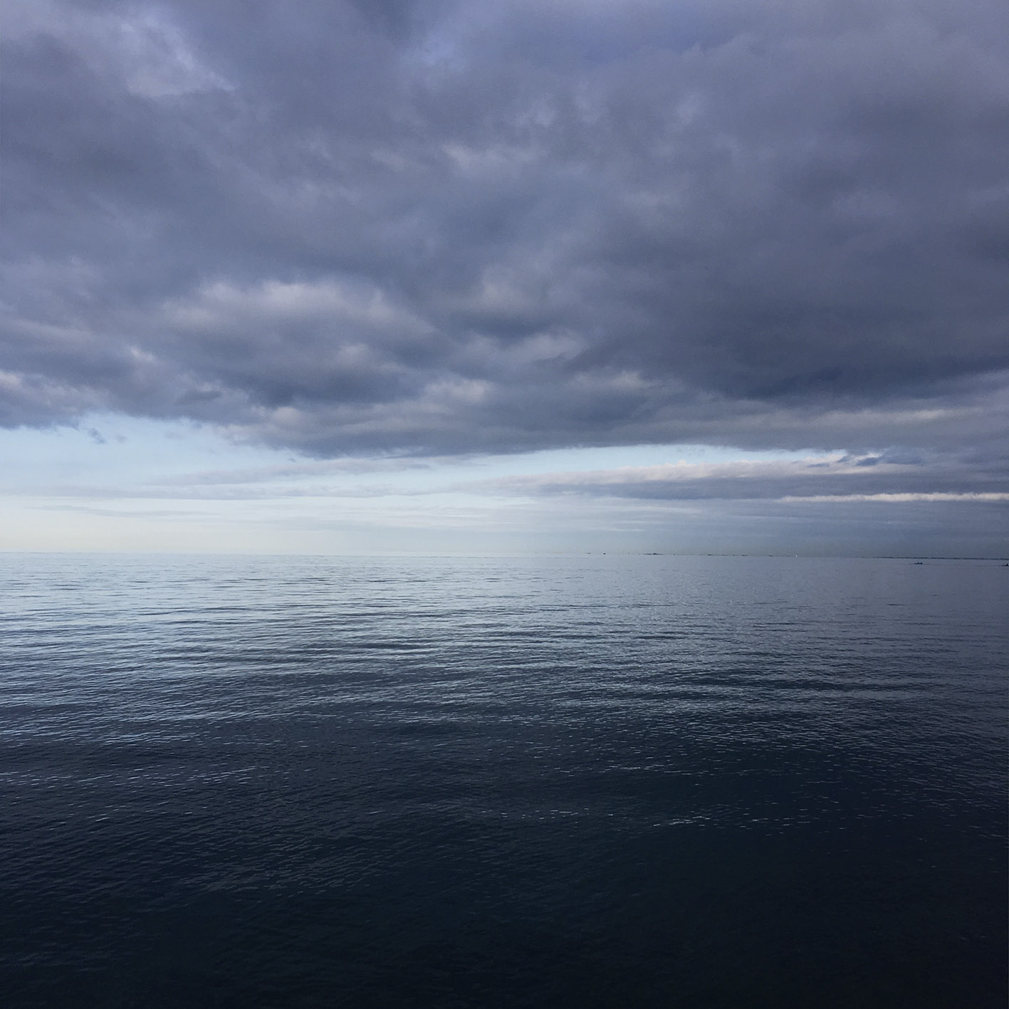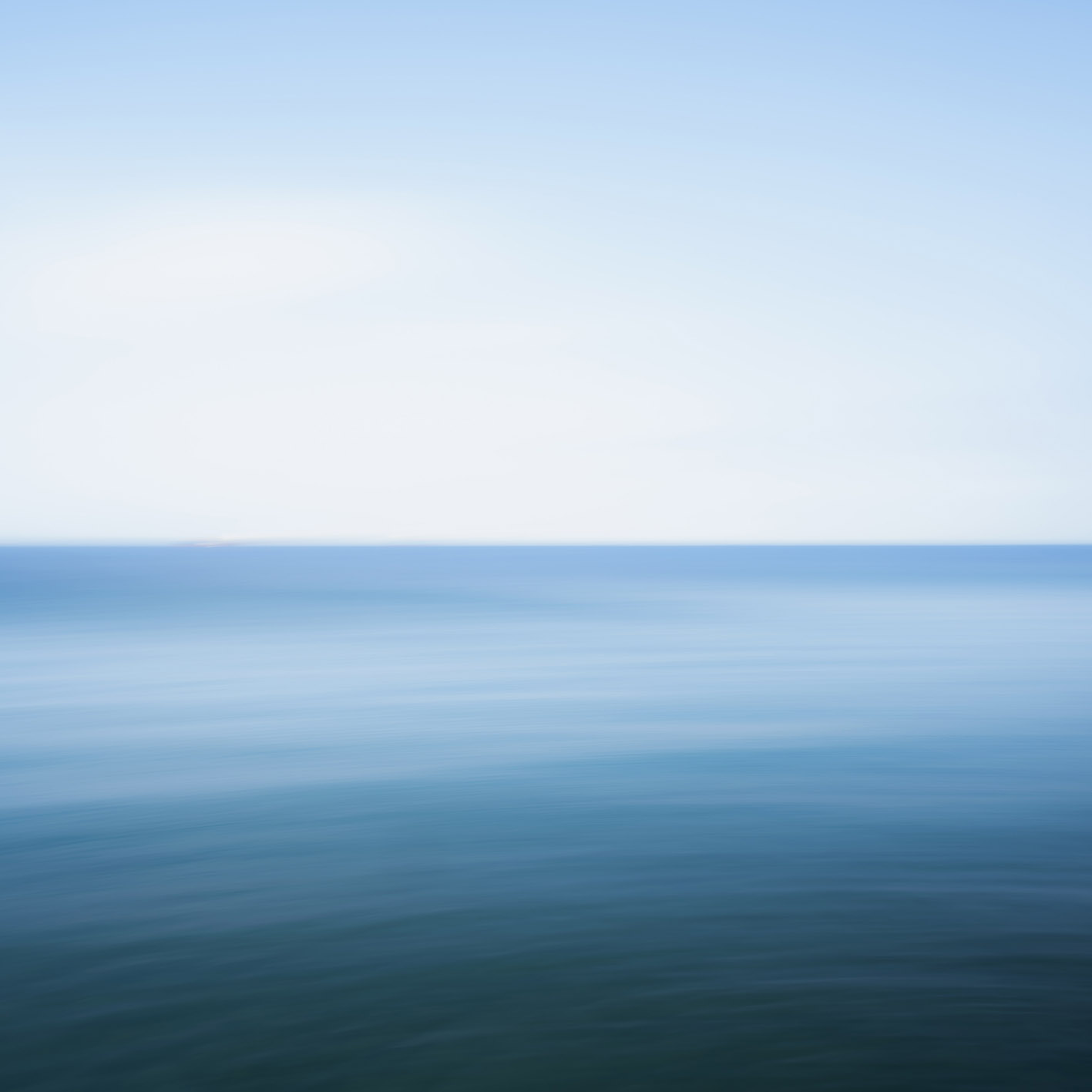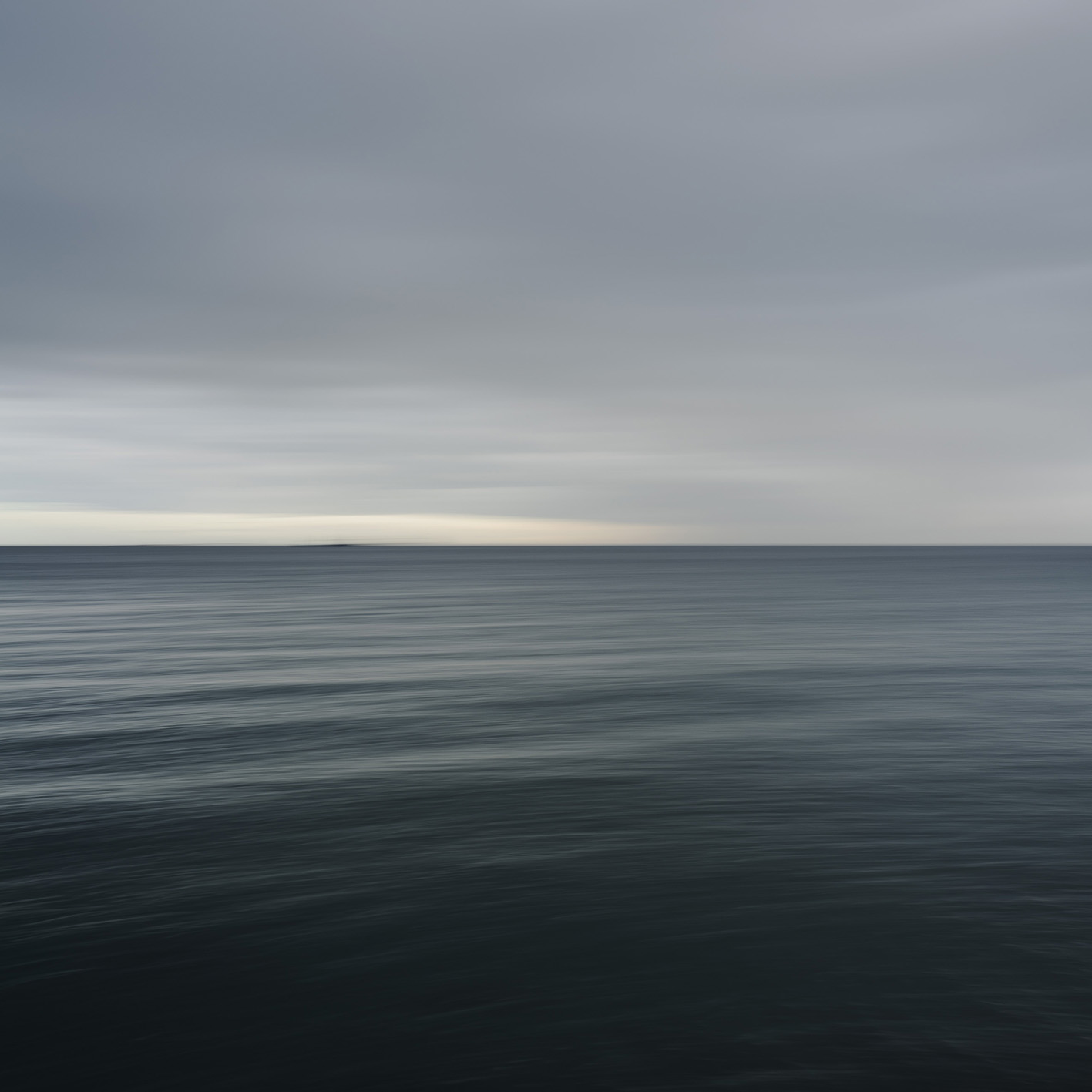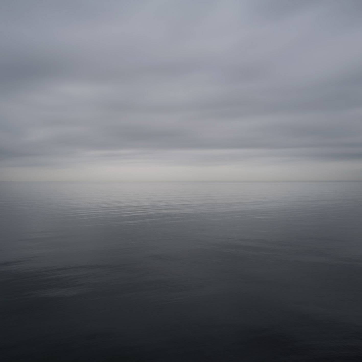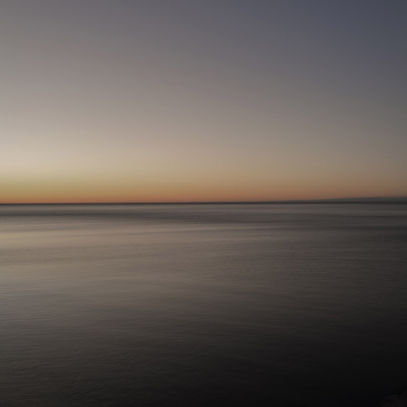 Simple square frames, split exactly in half, between sea and sky, always taken from exactly the same point, always in the same direction. And yet there has never been one shot that has been the same as another; the impermanence of the elements relentlessly rewrites the flow of time that never leaves the same traces to themselves. In those small images I still find memories of precious moments of being there presence, gained on that stone between echoes of the past and future thoughts. The wind’s light always leaves its mark on the surface of the sea, showing its shape on the surface of the water, redrawing the course of the clouds when they pass by.