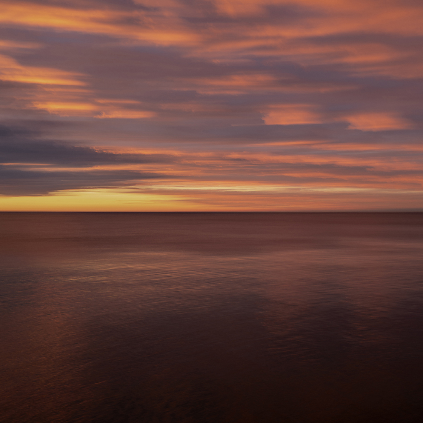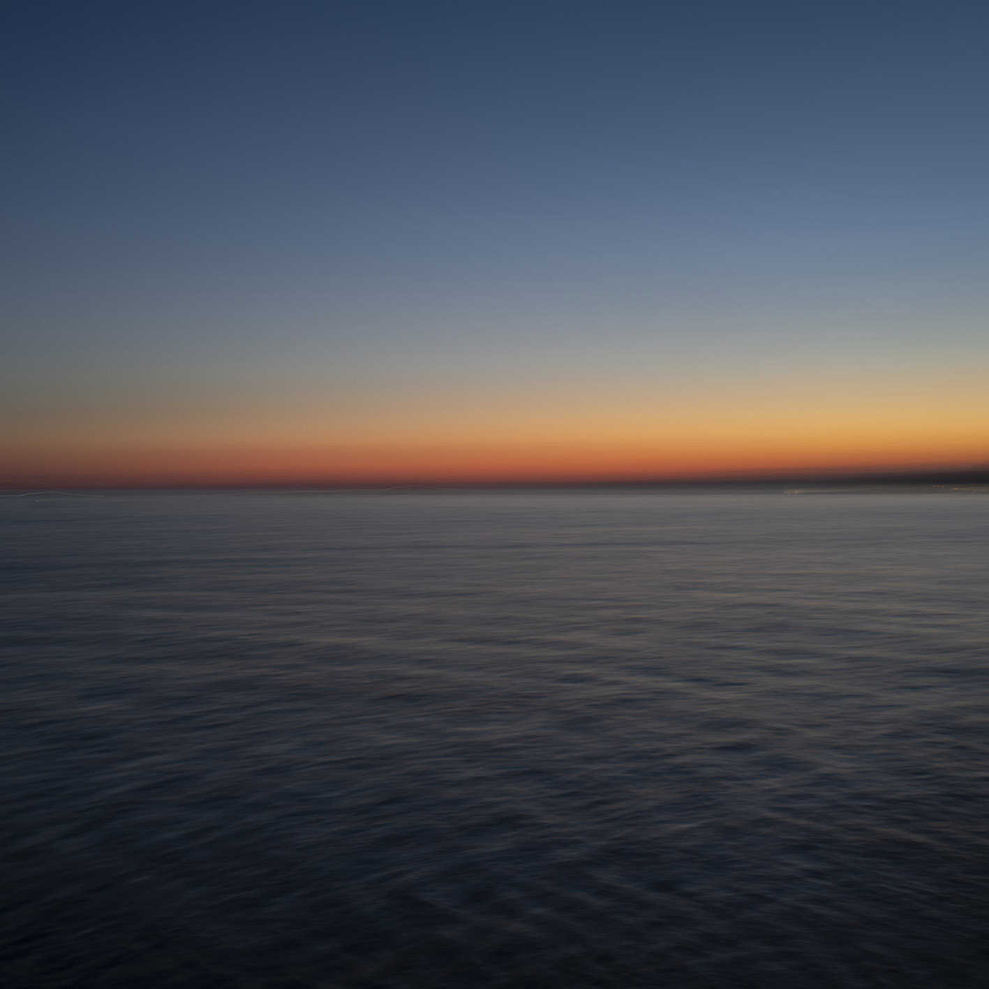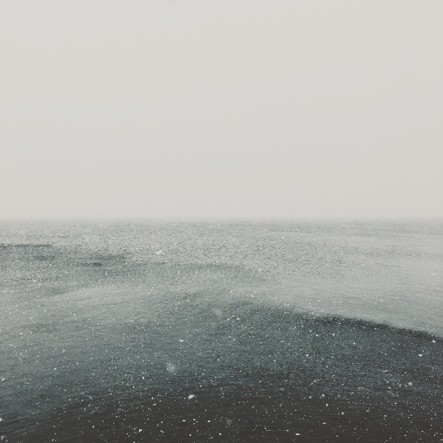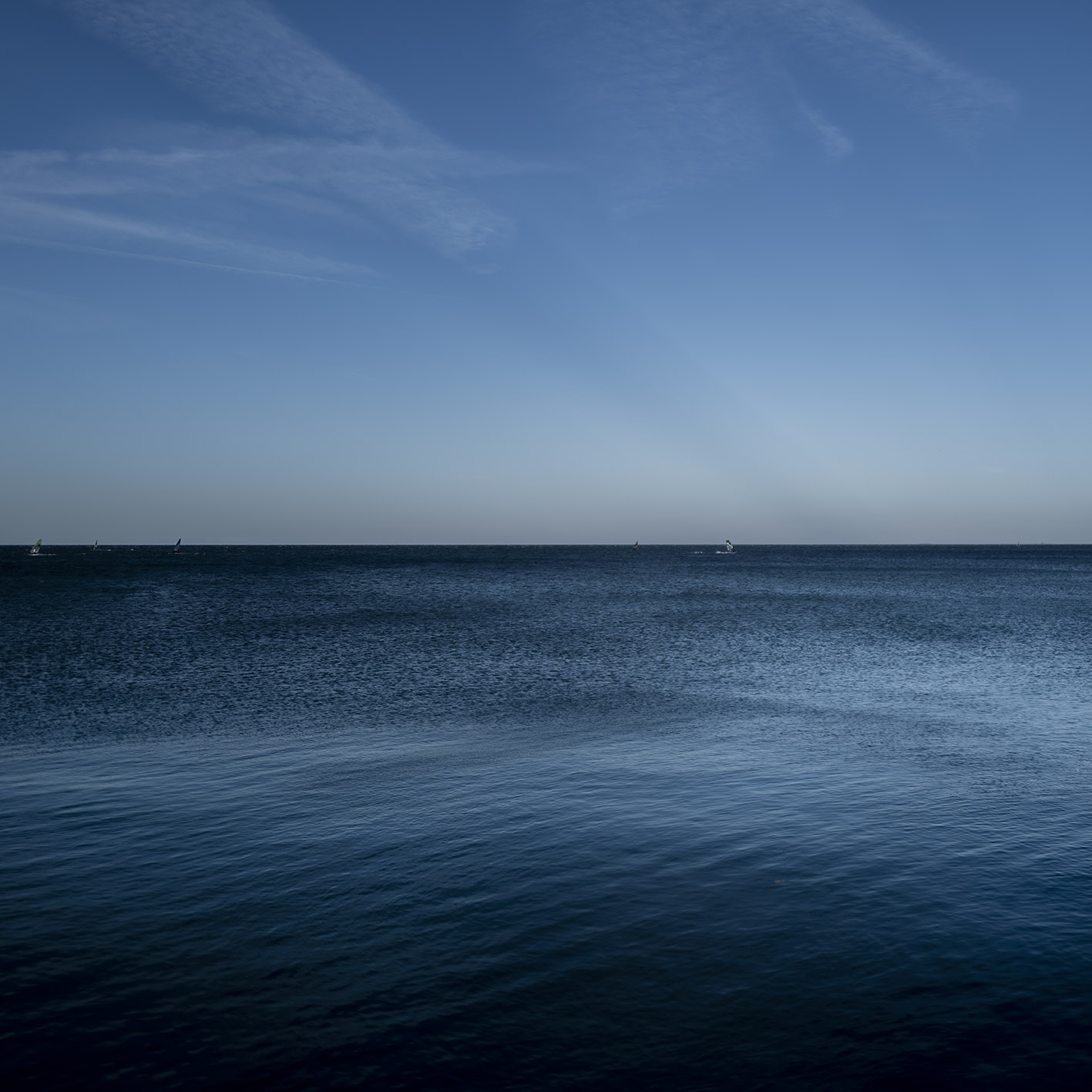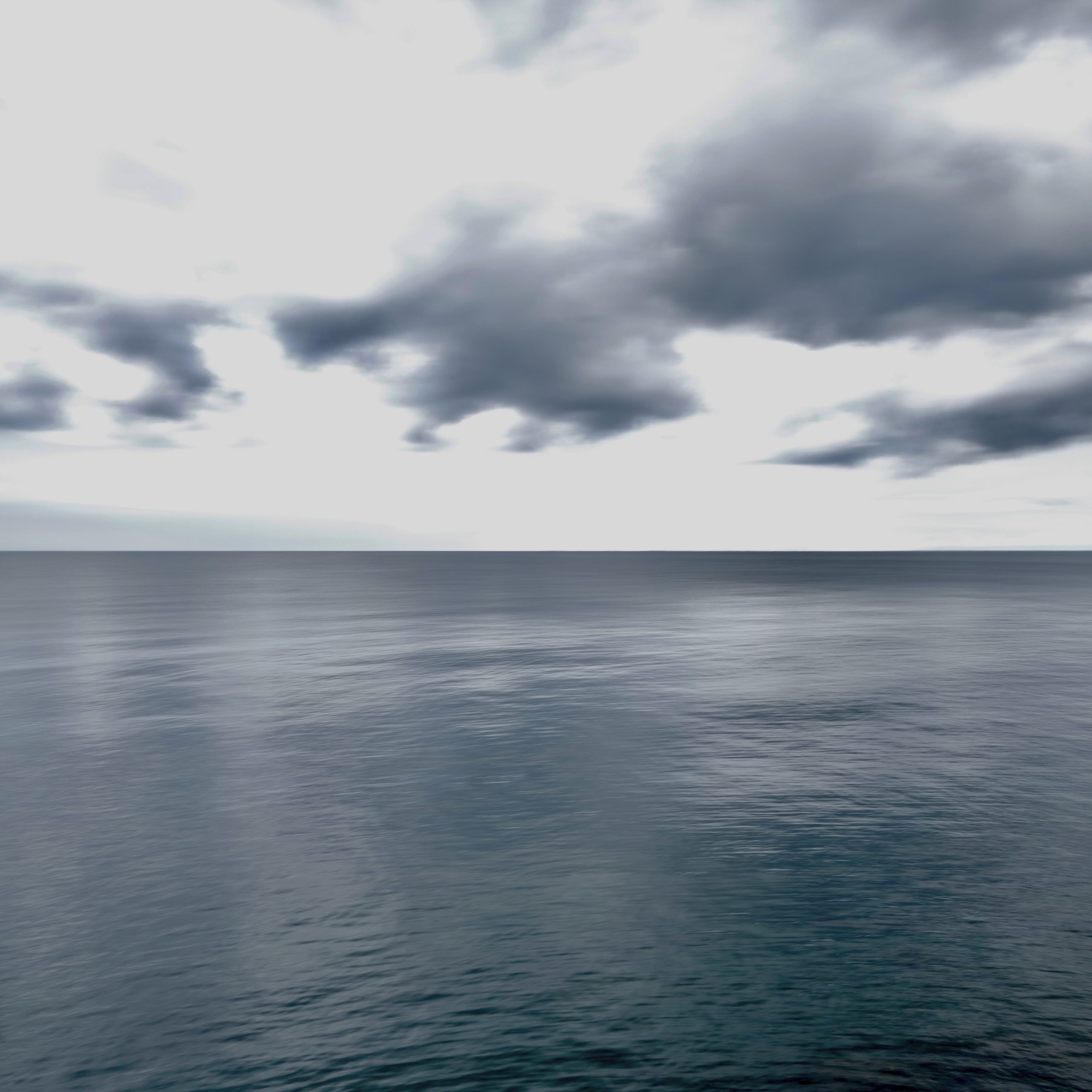 Simple square frames, split exactly in half, between sea and sky, always taken from exactly the same point, always in the same direction. And yet there has never been one shot that has been the same as another; the impermanence of the elements relentlessly rewrites the flow of time that never leaves the same traces to themselves. In those small images I still find memories of precious moments of being there presence, gained on that stone between echoes of the past and future thoughts. The wind’s light always leaves its mark on the surface of the sea, showing its shape on the surface of the water, redrawing the course of the clouds when they pass by.